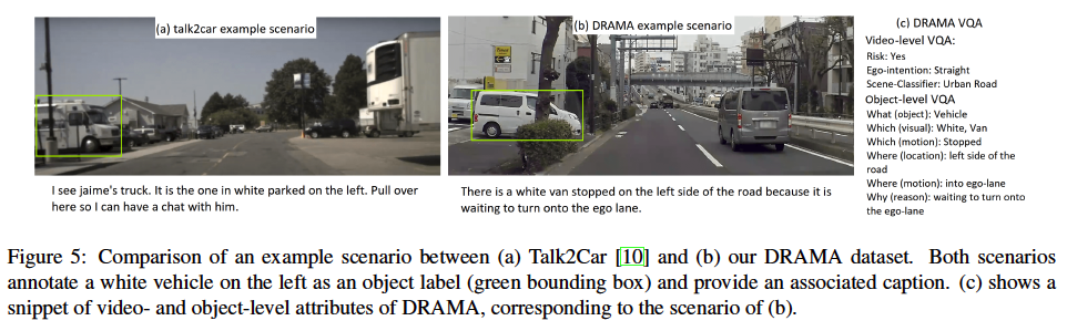 - BDD-X, BDD-OIA, HAD 가 캡션을 포함한 데이터이지만, risk를 인식하는것에 대해서 평가하기는 어렵다. (즉, ego 관점에서의 risk가 아니며 중요한 객체에 초점이 맞춰져있지 않음, label이 부족함)