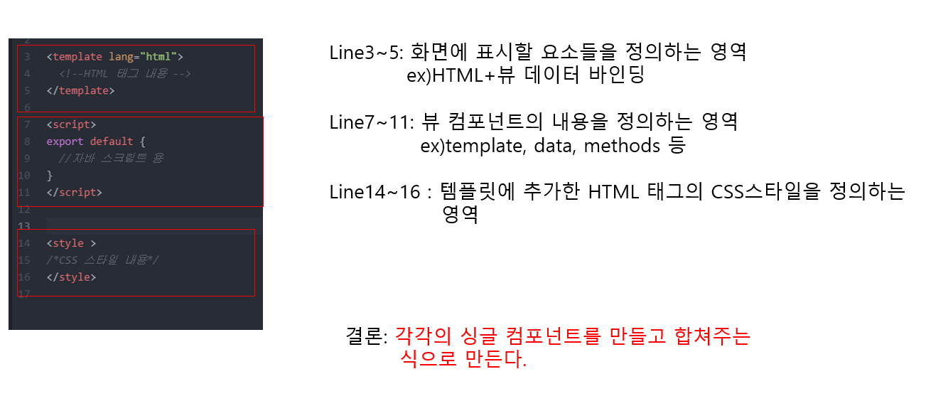 template안에 부분 : 우리가 보이고 싶어하는 컴포넌트의 순서대로 작성함