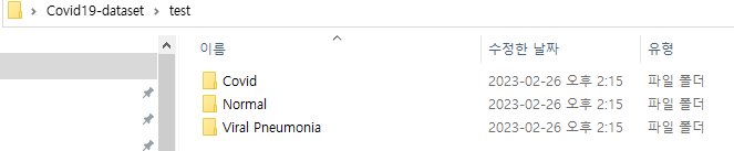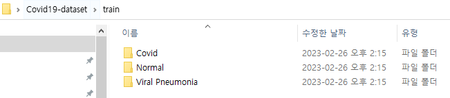 Covid, Normal, Viral Pneumonia 각각의 폴더안에 사진이 들어있음을 확인 할 수 있다.