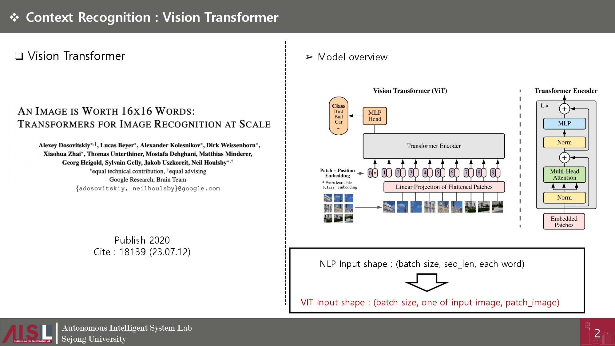 ➢사실상 Transformer모델을 간파하고 있다면 초기의 input에서 patch로 변환하는것 이외에는 색다른 부분이 없다.