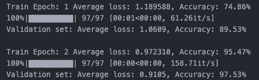 (Figure 2 . tqdm을 제거하고, 주석처리된 부분을 살렸을때 출력되는 모습)